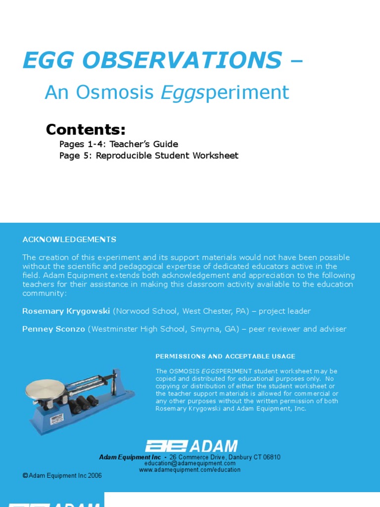 Egg Osmosis Lab Pdf - Egg Osmosis Lab Report.pdf - Egg Osmosis Lab Report Name and Date\u200b Sofia Garcia Central .... Download & view egg osmosis lab report as pdf for free. Diffusion is a type of passive transport, meaning it does not require energy input by the cell. In this lab your group will be given a raw egg. This lab explores the transport of water across the chorionic membrane of an egg by osmosis. Cells in all living things have an outer layer known as the cell membrane.
